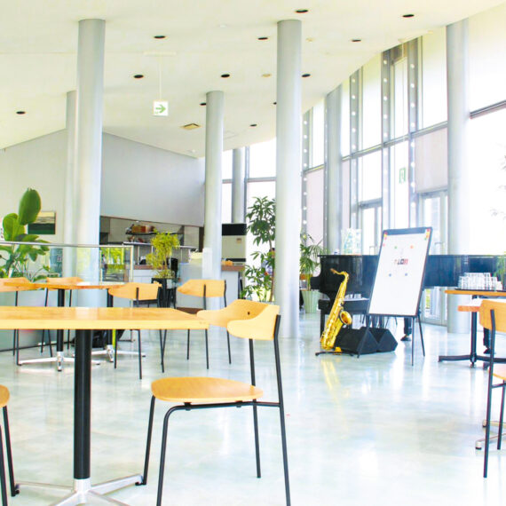 ア・トリエカフェは、岩国市総合体育館のすぐ側に位置し、